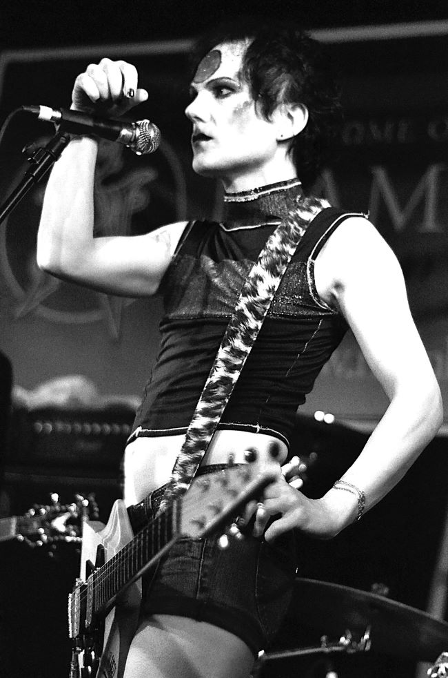 D . R . P ; Well at that point our shows were kind of crazy, in fact part of what impressed Robin about the us was all the craziness around the band. Also what was great about Robin joining was he bought a new enthusiasm to the band and that was great because we were all a bit jaded by the WEA situation. In terms of live shows, our trajectory was pretty much a straight "playing to two people in Leicester on a Tuesday night" to "headlining the two thousand capacity Astoria on Charing Cross Road". It did take about four years though! But it was testament to the fact if you endure at something you'll get results. In terms of Lowlights and highlights of those years, I would say that the time we supported Korn was definitely..... interesting. It was the first show they had ever done in the UK and we had the same agent so we got put on the bill after their singer Jonathan Davis requested a band that were totally unlike Korn to go on before them. He was a very cool guy and super friendly. The rest of Korn kept to themselves and when we went on the entire audience did a double take and just kicked off. Not in a good way. I was wearing hot pants and had pink hair which I wore in bunches. We had cans thrown at us and people shouting "fuck off!" and all that shit all the way through our set. I got hit in the face with a beer can. The thing is I didn't care. I'd grown up doing gigs in South Wales so being spat at physically threatened and having shit thrown at me was what I was used to when I played gigs. I think the audience was confused because they expected us to leave the stage and we just weren't going anywhere until we finished our set. At the end of the show I stood in the middle of the stage doing my "Jesus on the cross" stance as the strobes went off and the cans just rained down. It was pretty glorious and overnight we became kind of infamous amongst London metal heads. In a weird way it got us a lot of respect from those people, though we didn't give a fuck about being respected by anyone who would be violent towards someone in make up. The next big show we did was opening for No Doubt and that went really well. The audience were great. I had my hair in bunches again and ended the show by cutting them off with scissors and throwing my hair into the crowd. Gwen Stefani was like " I can't believe you just did that!" but when I'm on stage it's the most important thing in the world, It's not performance it's real, in the moment magic. After that we started to get more and more people to our own shows and went on from selling out the Old Falcon on Royal College Street to selling out the Garage in Highbury, the LA2 and eventually the Astoria. In between we opened for Cheap Trick which was mind blowing for me as they were my favourite band. They actually used some of our gear for that show as they were over in England for Robin Zander's daughter's wedding and they decided to play two shows while they were here but they didn't bring their own backline. They used my bass amp which was great as Tom Petersson was a huge influence on my playing. Those gigs were really cool and we got to meet the band and hang out a bit. Rick Nielsen's young daughter really dug us so we signed some CDs for her and Rick complimented my singing so it was kind of a dream come true. We also opened for The Tubes at one point who we also loved. We met Adam Ant in that period and he appeared on stage with us and sang two of our songs. One thing that wasn't so great was that we never got to do a full tour as openers. For some reason we just never got offered an opening slot for say Marilyn Manson or Garbage or a band like that which I think would have been great for us. Instead we just whittled away at it and whilst it did pay off I think we would have benefitted from getting in front of a wider audience as well as all the cool misfit kids who made up our own crowd. Another funny thing was that we used to get a bunch of the Nu Metal bands coming to see us play. Any musician who has ever worn make up and dressed cool will know what I'm talking about when I say other bands never took us seriously because of how we looked. We would get these guys in Korn rip off bands chancing upon one of our shows being really dismissive and then after they saw us would come up to us and say "Woah! You can really play and sing! Your drummer is amazing!" and we'd be like "yeah, of course we can play!". Those guys also realised that whilst they were playing to angry teenage boys our audience was mostly girls and they would come to our shows to try and hit on the girls but our crowd was really switched on, feminist kids who just kind of laughed at these grown men wearing backwards baseball caps and shorts. Our audience was super cool. We had a lot of gay and trans kids at our shows and it was such a great atmosphere at the gigs. I think if we had have become more successful we may have lost what was cool about us. I can't really imagine how we would have functioned in the mainstream.