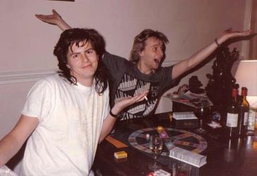 "Yes of course I can show you how to play, just let me finish my drink!" Glam and Prog meet, Gerry and Guy