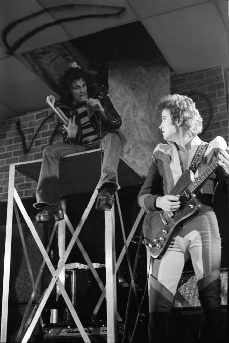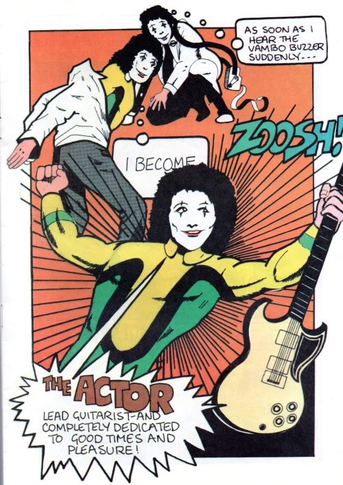 Z . C. ; At an early age, in the late ‘50’s and early ‘60’s, I first heard and saw the likes of Elvis Presley, Bill Hayley, Little Richard, Jerry Lee Lewis and Gene Vincent. It wasn’t hard to appreciate the energy of the music and just as influentially, the excitement of the performance. Perhaps this early introduction to the theatrical side of rock and roll grew with me into my own career. Prior to SAHB, I started a band at school - The Bo Weevils; our early influences were many of the black, American soul and R&B groups such as The Temptations and The Four Tops. Again, there was a style of performance that was highly polished and very visual. When we morphed into Tear Gas, the whole thing had shifted away from the overt, stylised performer into a much more moody, introspective, serious musician mindset. When Alex first saw Tear Gas, I think he sensed the latent showman in me and encouraged the whole band to develop and expand on the visual side of the performance. It was a natural step that I adopted. As a guitarist I have always had a curious, idiosyncratic idea of the guitar hero. It amused me to see guitar players agonise and pose their way through angst-ridden solos. I enjoyed aping them and took a sarcastic liberty. It was decided that this ‘gift’ could be exploited by using a mime face to further exaggerate the performance. It worked well and became a bit of a trademark.
